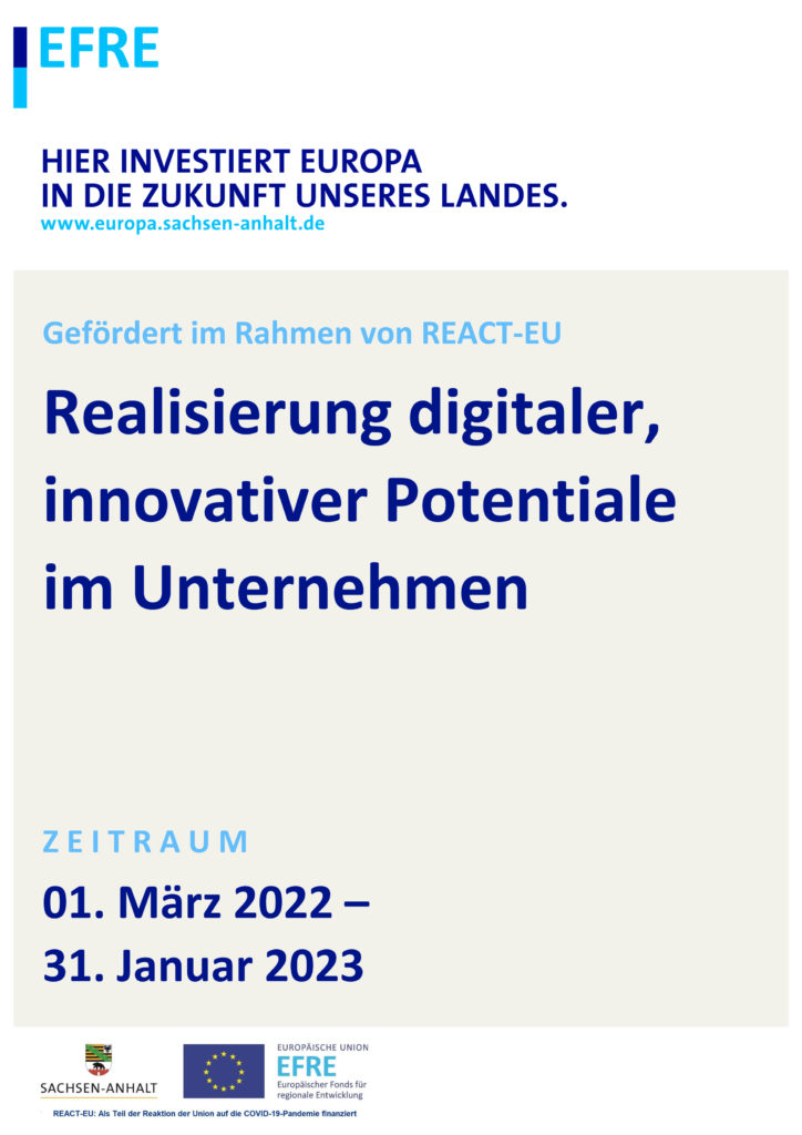 Die Digitalisierung im Unternehmen wird einerseits durch die Erstellung einer Website, sowie durch die Professionalisierung des Online-Marketings mittels Suchmaschinenoptimierung und Social Media Marketing vorangetrieben und die Umsetzung einer neuen Website, sowie eines Chatbots verbessert. Im Fokus steht eine Umstellung bisher analoger Prozesse auf digitale Prozesse und Abläufe. Die Ziele bestehen darin, interne Prozesse effizienter zu gestalten, als auch deutlich mehr Kunden online zu akquirieren, um langfristig ein signifikantes Umsatzplus zu erreichen. Hierfür wird die finanzielle Unterstützung durch die EU sinnvoll verwendet.
